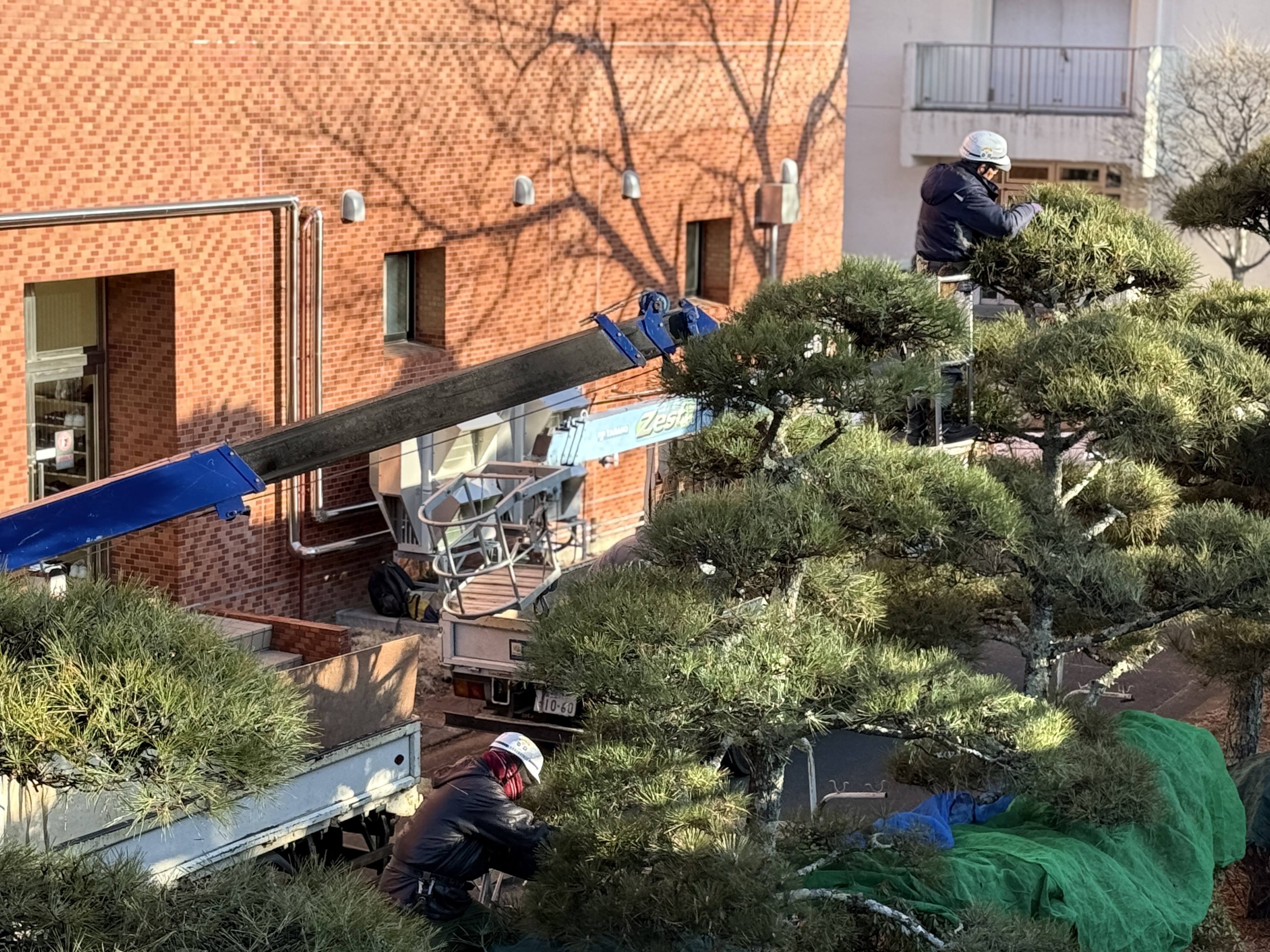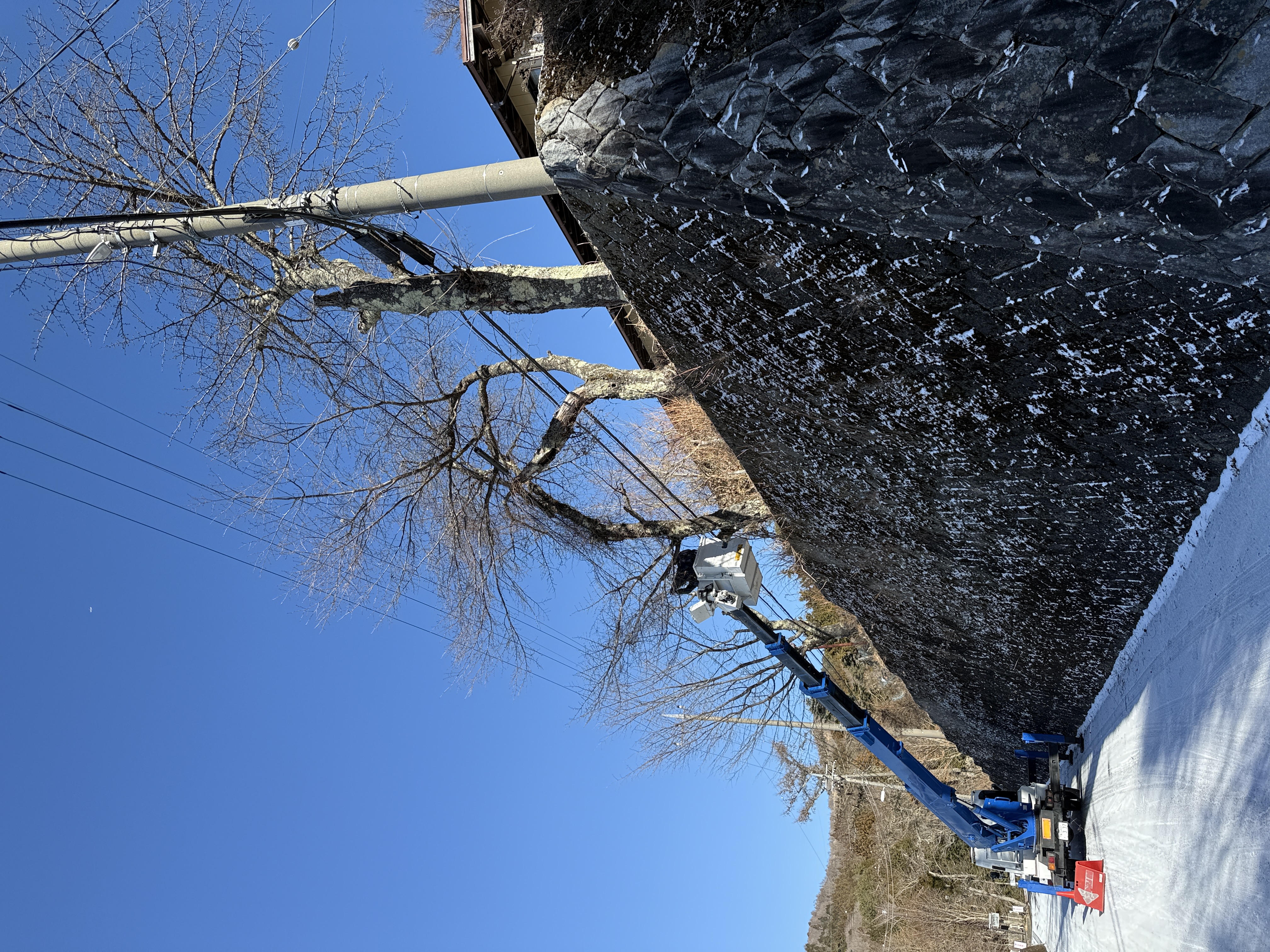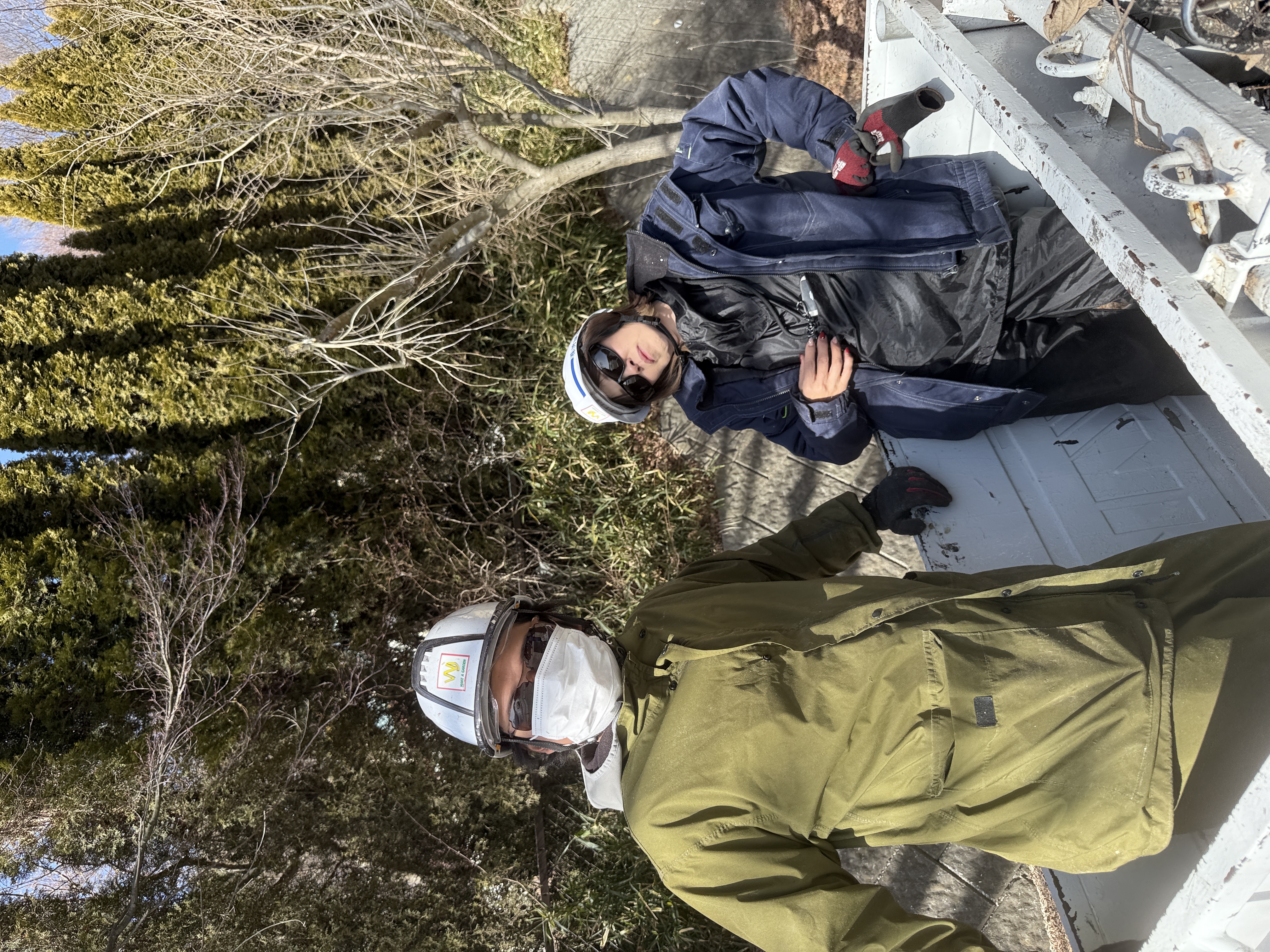 写真は山中湖 絶景の中、高木剪定をさせて頂きました。薄ら雪が舞いましたが暖かい為すぐ融けました。