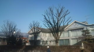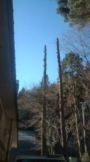 南アルプス市では大きなケヤキをきれいに剪定 作業完了後には見違えるほど明るくなり、庭園に光が射し 上を見上げると、素敵な南アルプスの空がひろがっていました。