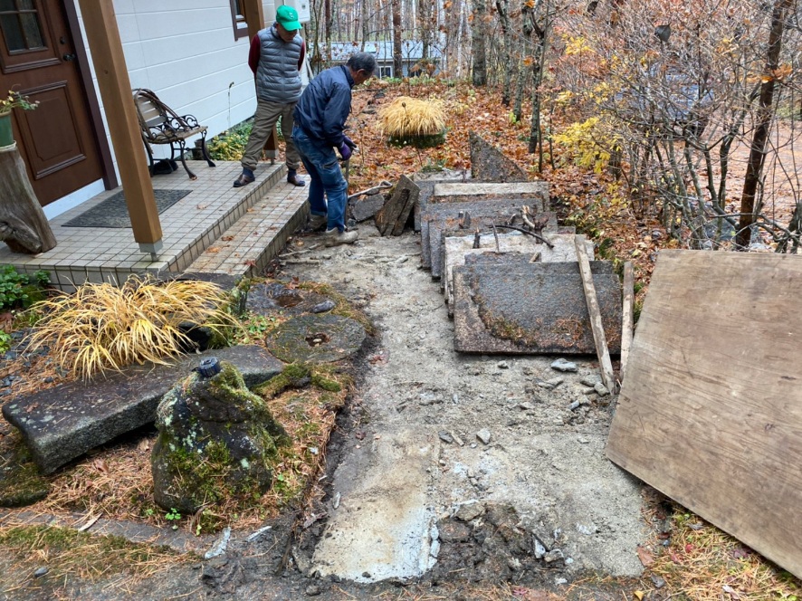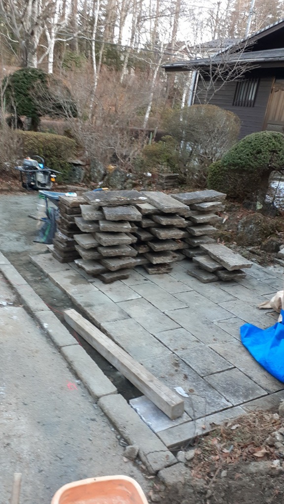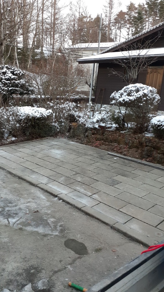2023年 スタート 皆様❗御予約誠に有り難うございます❗感謝❗感謝❗年末から個人邸の御予約激増中❗僕達❗私達❗頑張ります❗(^^)富士桜高原N邸富士桜 丸紅H邸 敷石改修工事 (玄関周り、駐車場)富士河口湖町 富士桜高原別荘地内 富士桜丸紅別荘地内にて造園工事をさせて頂きました。